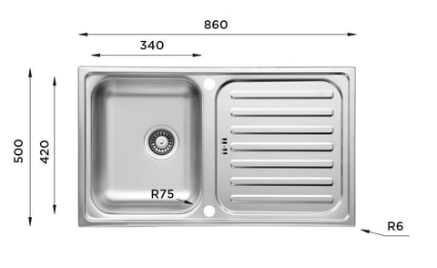 The Ukinox EC 860.500 Kitchen Sink is a reliable and practical Monoblock sink, crafted from 0.7 mm polished stainless steel. Featuring a 340×420 mm bowl with a 175 mm depth and an integrated drainer, this model is designed for compact to mid-sized kitchens that value affordability and everyday usability.